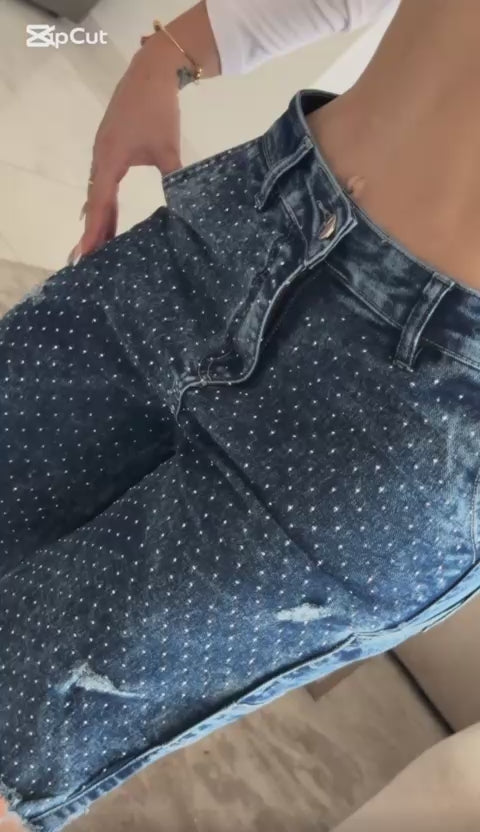 BERMUDA CON PEDRERIA COMPLETA RIGIDA K4450💖 ENVÍO GRATIS 💖